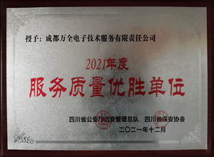 熱烈慶祝成都萬全電子榮獲2021年度“服務(wù)質(zhì)量優(yōu)勝單位”稱號