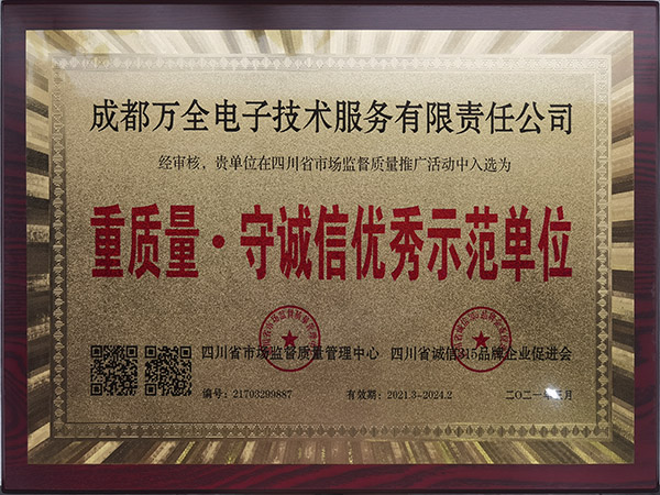 熱烈慶祝成都萬全電子榮獲"重質(zhì)量·守誠信優(yōu)秀示范單位"稱號